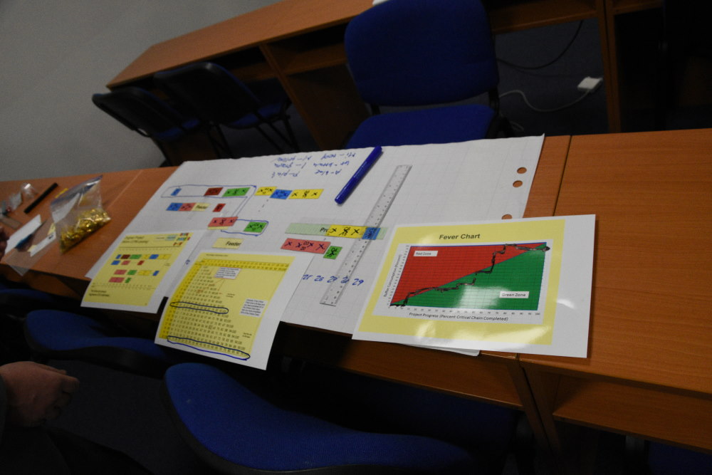 - Sledování postupu projektu, náhodné vlivy jsme simulovali